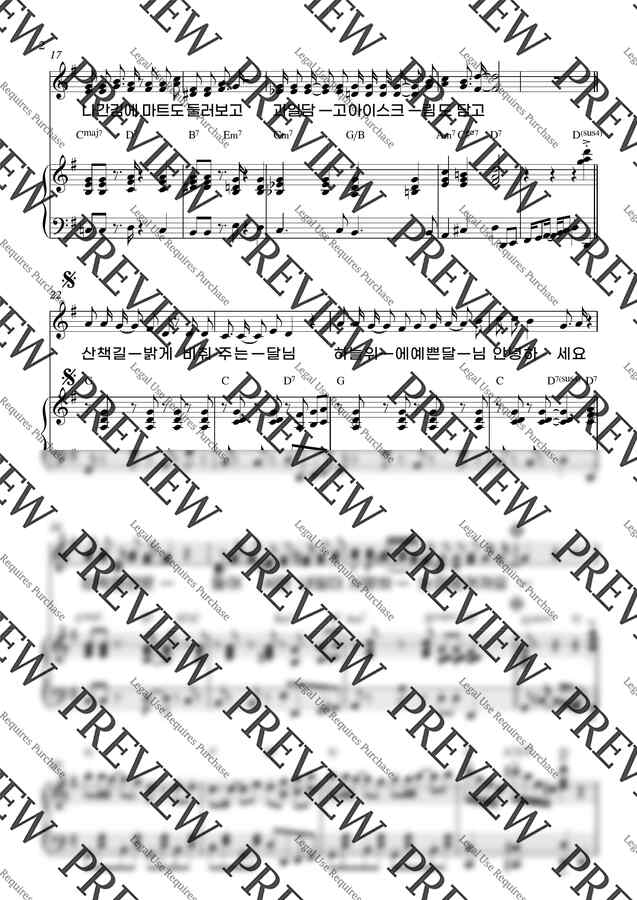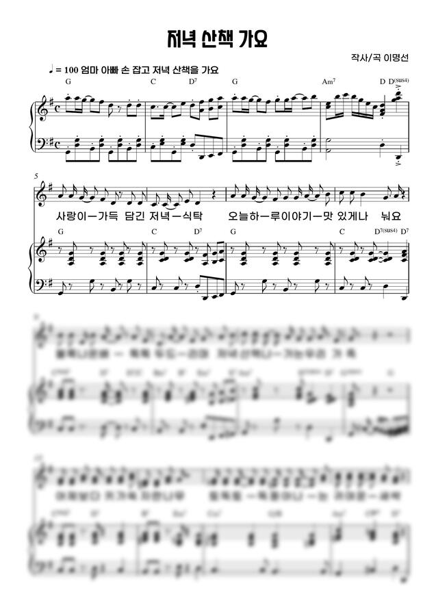 피아노 반주 3단 악보와 선율 악보가 포함되어 있습니다