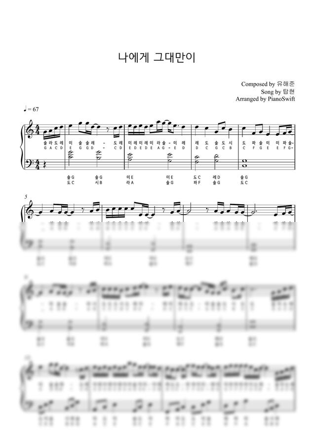 탑현 - 나에게 그대만이 피아노 악보 입니다.