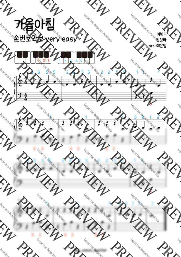양희은 원곡 / 아이유 리메이크 - 가을아침 손번호악보 (베리이지) by 예은쌤