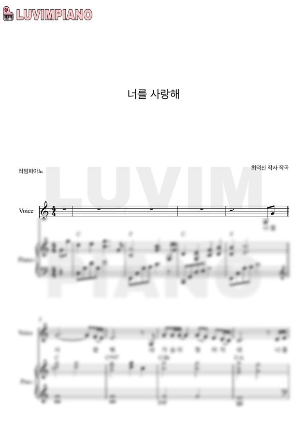 최덕신 - 너를 사랑해 (C key) by 러빔피아노 1p 미리보기
