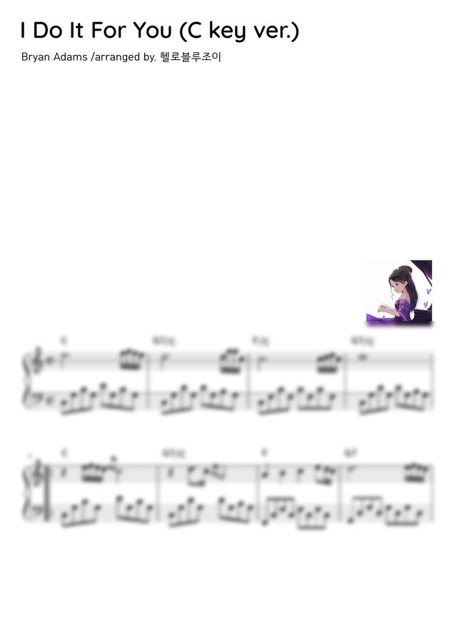 Bryan Adams - I Do It For You (쉬운 버전 악보) by 헬로블루조이 1p 미리보기