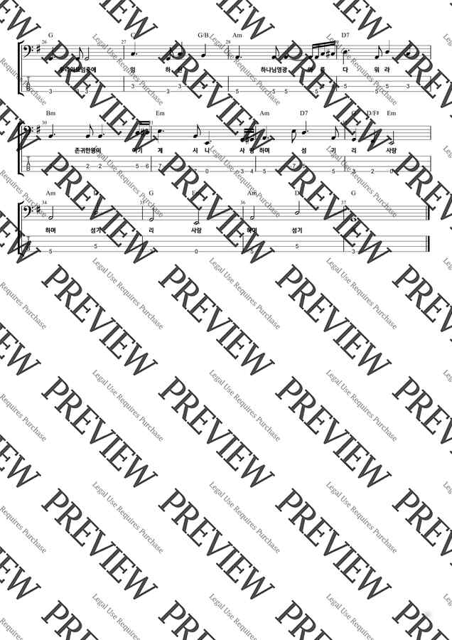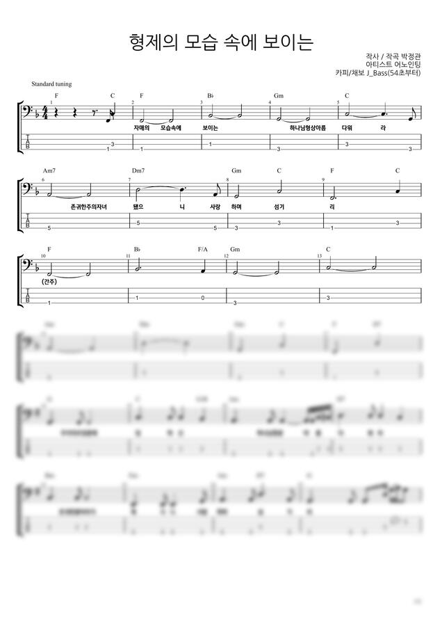 어노인팅 2집에 있는 "형제의 모습속에 보이는" 찬양 베이스기타 악보입니다.