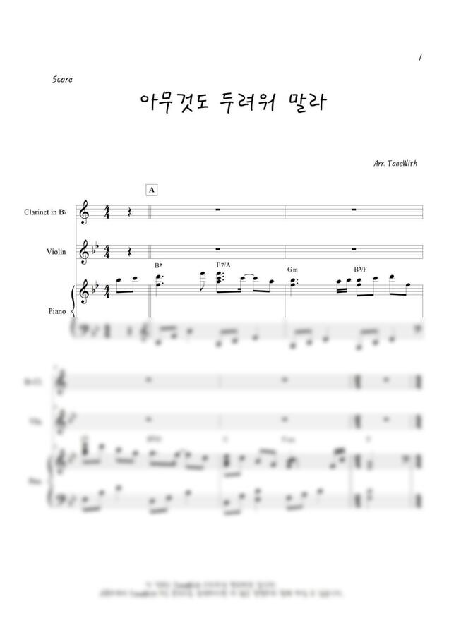 +)악보는 스코어와 피아노 클라리넷 바이올린 파트보로 구성되어 있습니다.