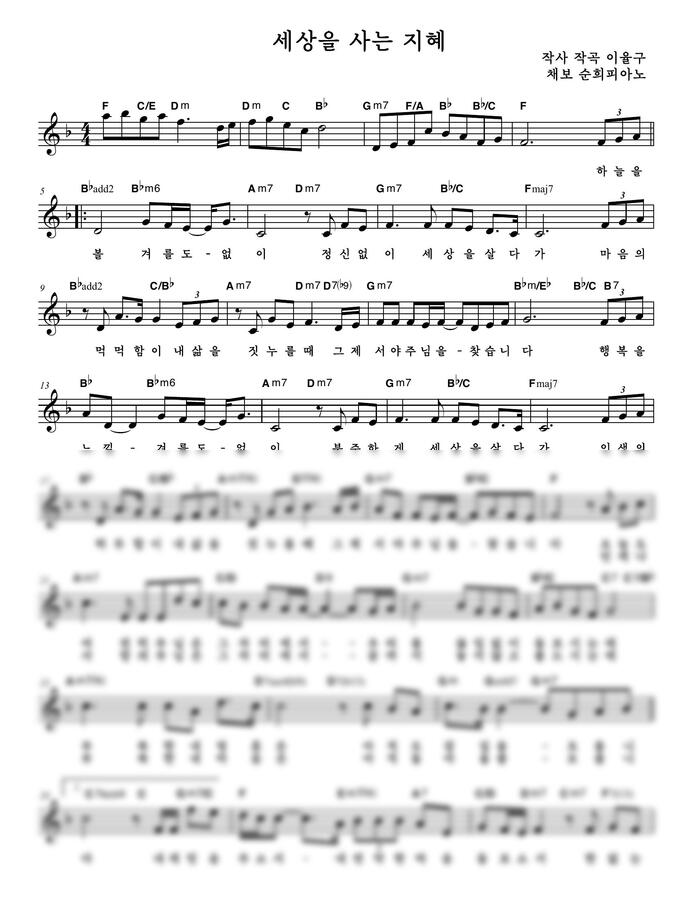 이율구 - 세상을 사는 지혜 (C&D, D&E, Eb&F, F&G) (보컬 악보) by 순희피아노0