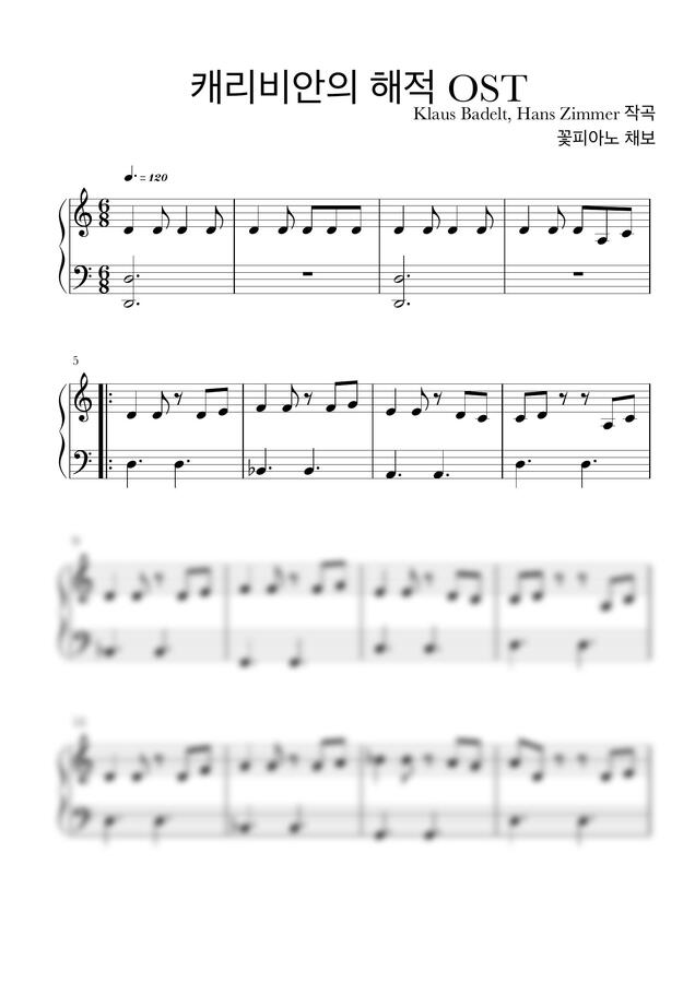 캐리비안의 해적 OST - He's a pirate (중급 악보) by 꽃피아노