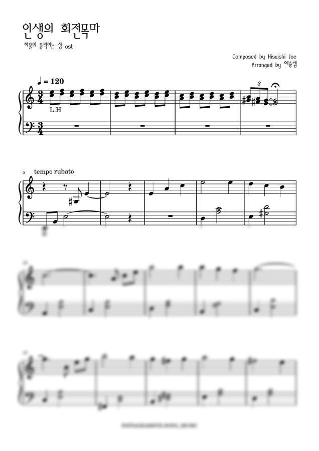 하울의 움직이는 성 ost - 人生のメリーゴーランド(인생의 회전목마) (C키 쉬운고퀄악보) by 예송쌤