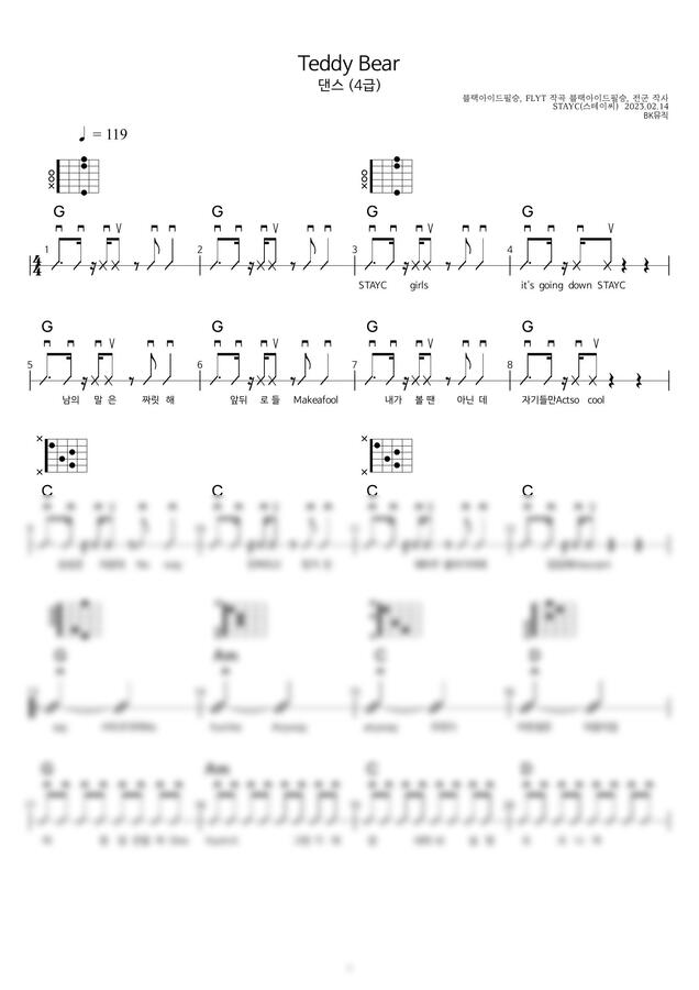 STAYC(스테이씨) - Teddy Bear ♩=119 (4급)3P기타악보