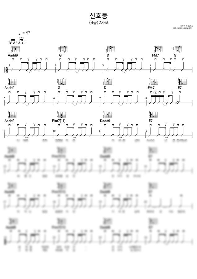 이무진 - 신호등 기타악보 ♩=97(4급) 기타악보3P
