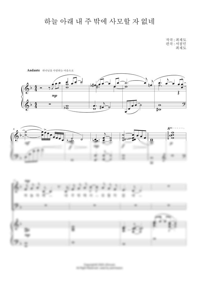 하늘 아래 내 주 밖에 사모할 자 없네 - 혼성 4부 합창