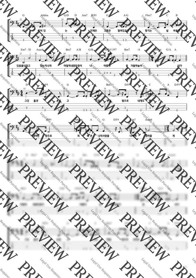 김광석의 너에게 라는 노래 베이스기타 악보입니다.