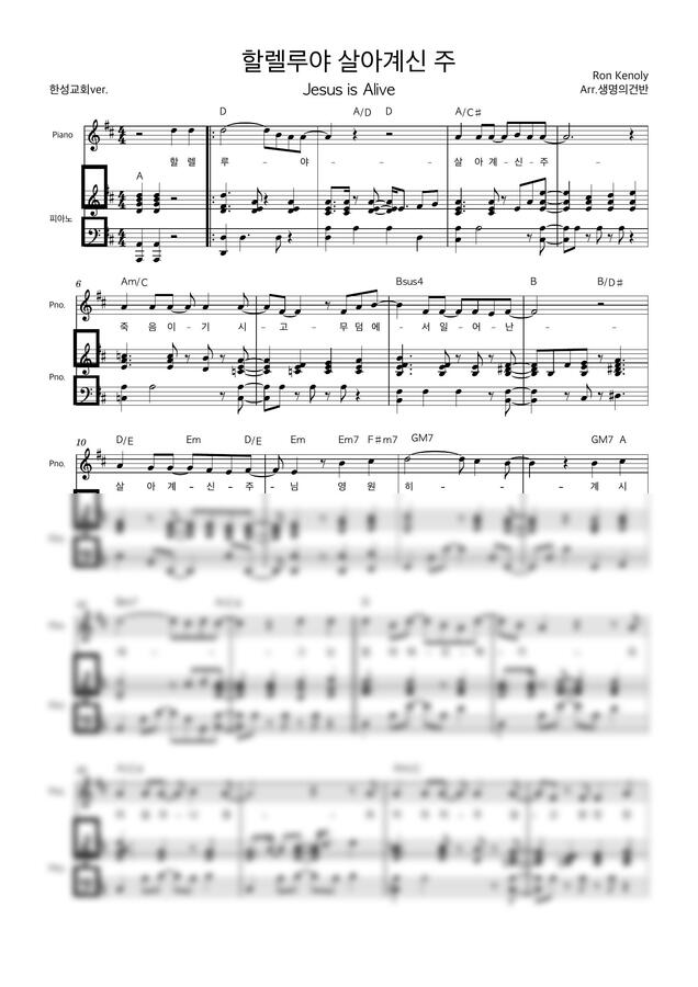 Ron Kenoly - 할렐루야 살아계신 주(Jesus is alive) (한성교회ver.) by 생명의건반