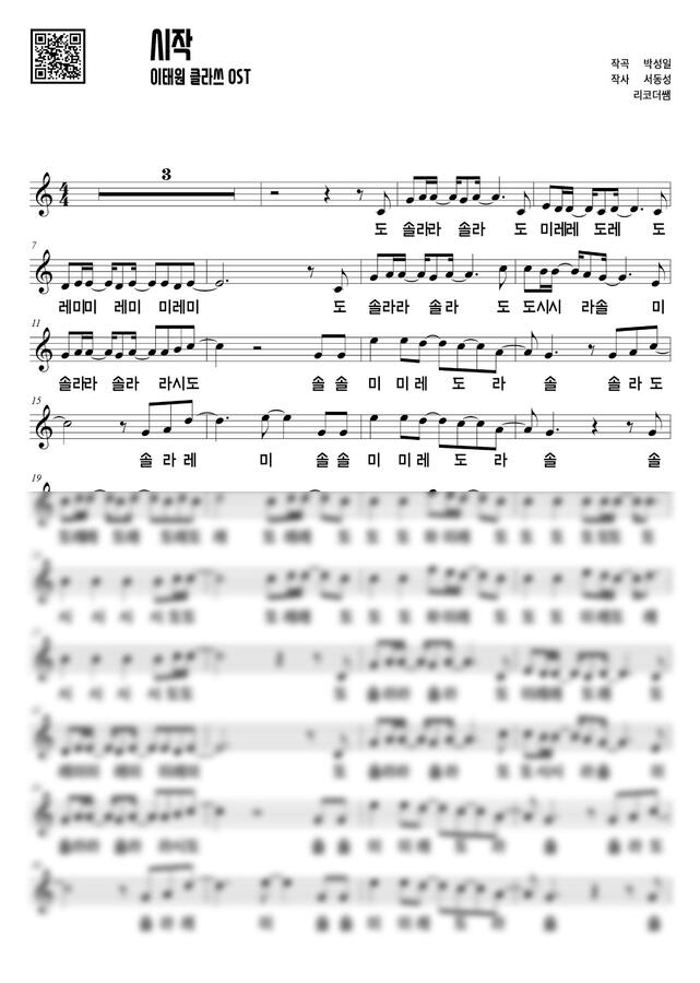 이태원 클라쓰 OST - 시작 (계이름) by 리코더쌤