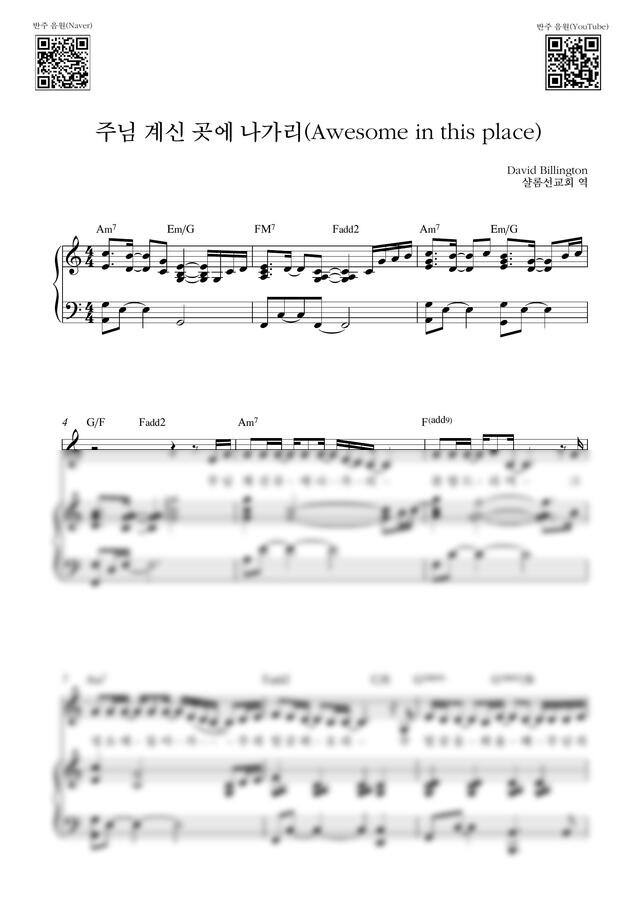 주님 계신 곳에 나가리라는 곡을 반주해봤는데 원곡은 Hillsong의 Awesome in this place입니다. 곡에 별다른 기교 없이 간단하게 반주해봤습니다~