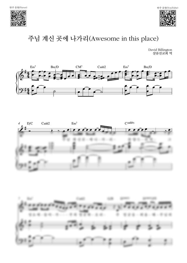 David Billington - 주님 계신 곳에 나가리 (Awesome in this place)_G Key (피아노 3단) by Samuel Park0