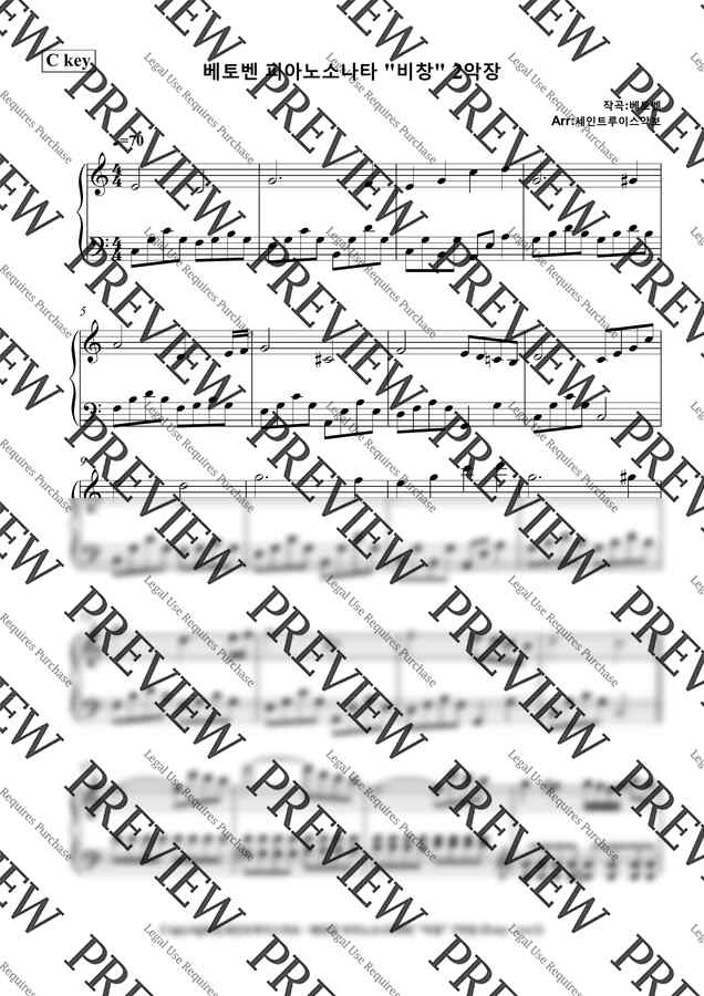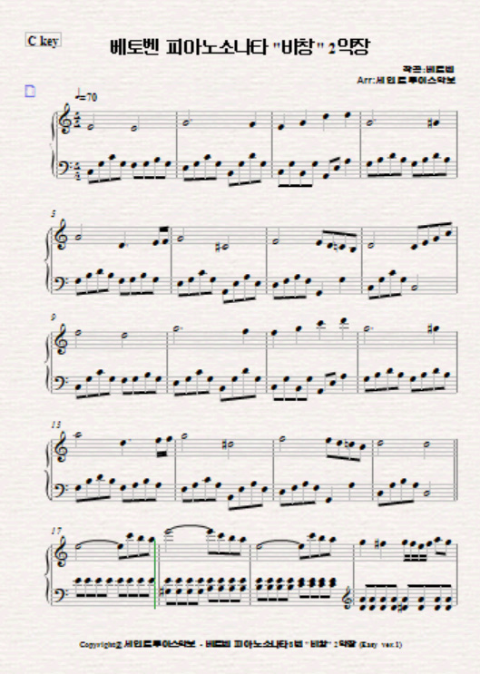 베토벤 피아노소나타 8번 "비창"소나타의 2악장을 쉽게 연주할 수 있도록 편곡 했습니다
