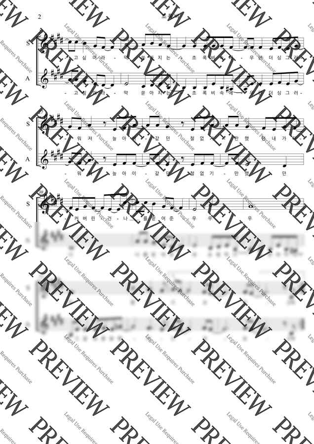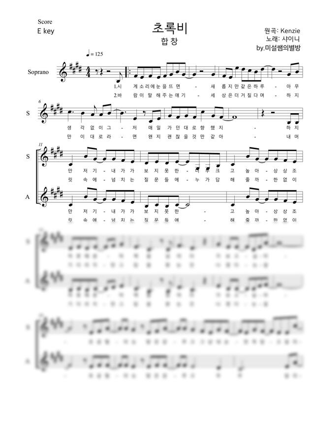 가사도 좋고 멜로디도 좋은 초록비 2부 합창 악보입니다:D