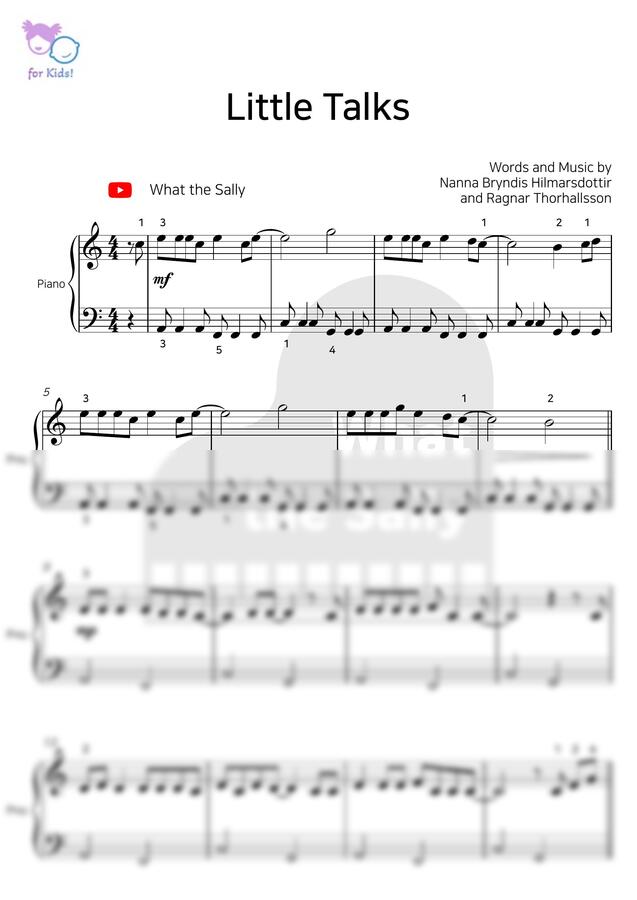 이번 곡은 ‘Of Monsters and Men - Little Talks’입니다. 우울한 가사와는 반대로 업비트 템포와 꽤나 역동적인 리듬을 가지고 있는 곡입니다 :) 꽤나 에너지가 넘치죠ㅎㅎ 팝송을 좋아하는 어린 친구들에게 재밌게 연습하기 좋은 버전입니다!