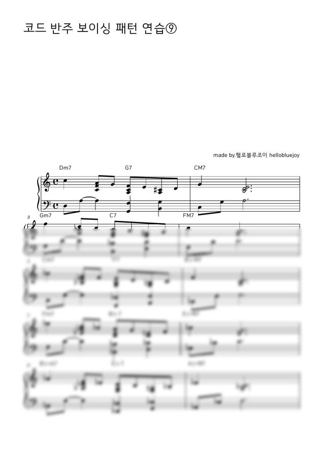 오늘은 코드 반주 보이싱 패턴 연습⑨ 악보를 만들어 보았습니다. 코드 반주 보이싱 패턴 연습하시고 싶은 분들께 추천드리는 악보입니다. 가요,pop, ccm,작곡 등 적용해서 연주가 가능합니다. 즐겁게 연습하세요.