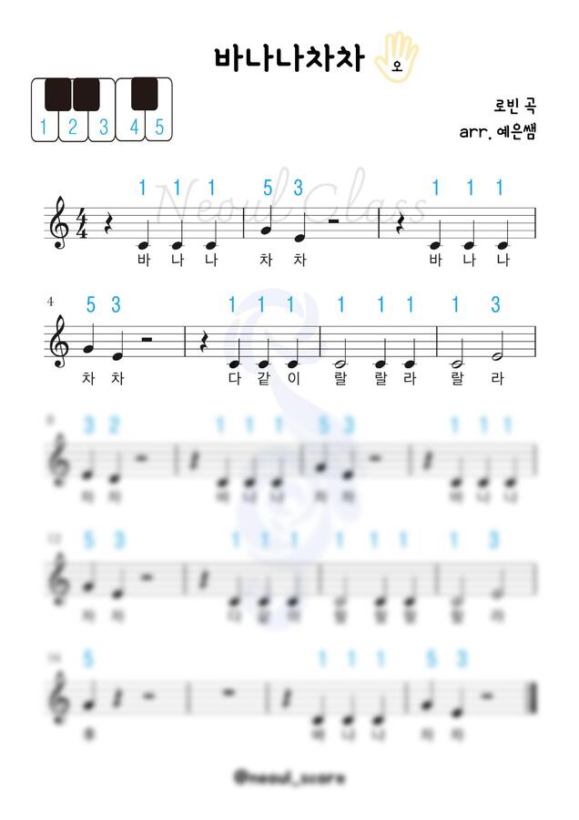 바나나차차 (손번호악보 꼬마손) by 너울클래스