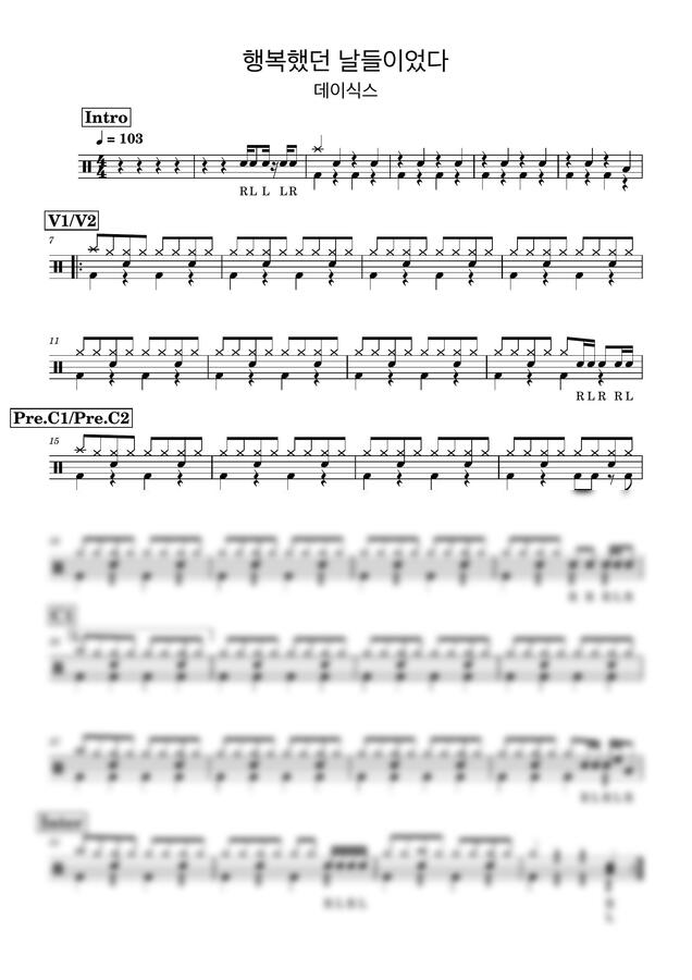 데이식스(Day6) - 행복했던 날들이었다 드럼악보입니다!