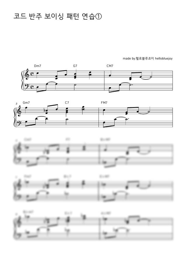 오늘은 코드 반주 보이싱 패턴 연습①-⑮ 악보 모음집을 만들었습니다. 코드 반주 보이싱 패턴 연습하시고 싶은 분들께 추천드리는 악보입니다. 가요, pop, ccm,작곡, jazz 등 적용해서 연주가 가능합니다. 즐겁게 연습하세요.