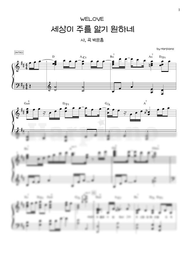 박은총 님 작사, 작곡의 세상이 주를 알기 원하네를 1절은 반주, 2절은 멜로디가 포함된 연주로 해 보았습니다.