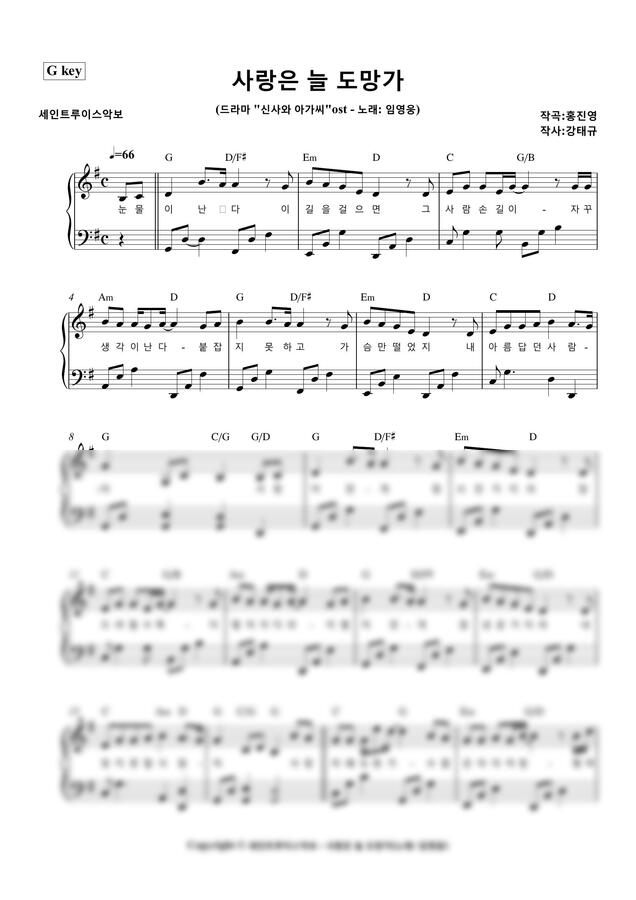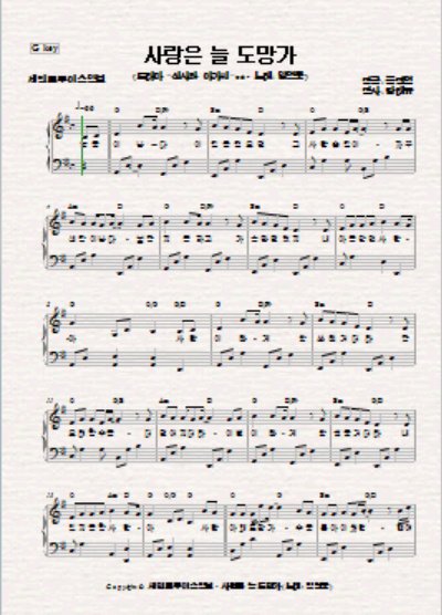 "사랑은 늘 도망가"를 쉽게 연주할 수 있게 G key악보로 만들었습니다