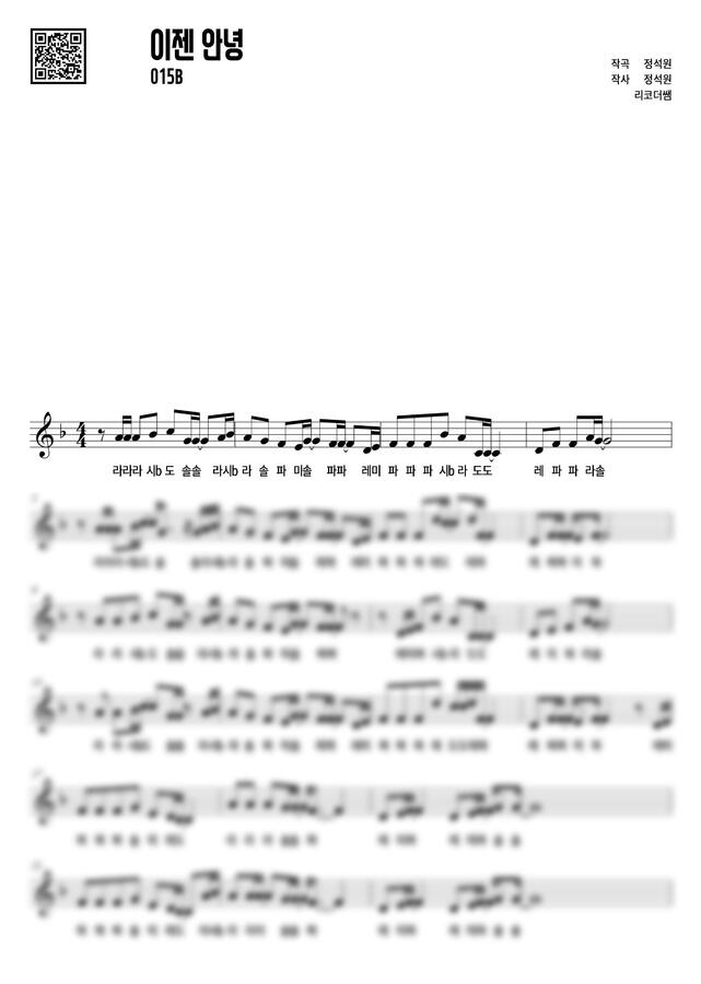015B(공일오비) - 이젠 안녕 (계이름) by 리코더쌤