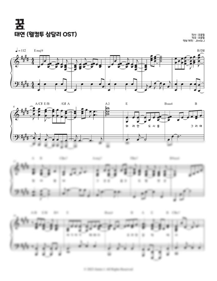 웰컴투 삼달리 OST - 태연 "꿈" (조용필 작곡)악보입니다.