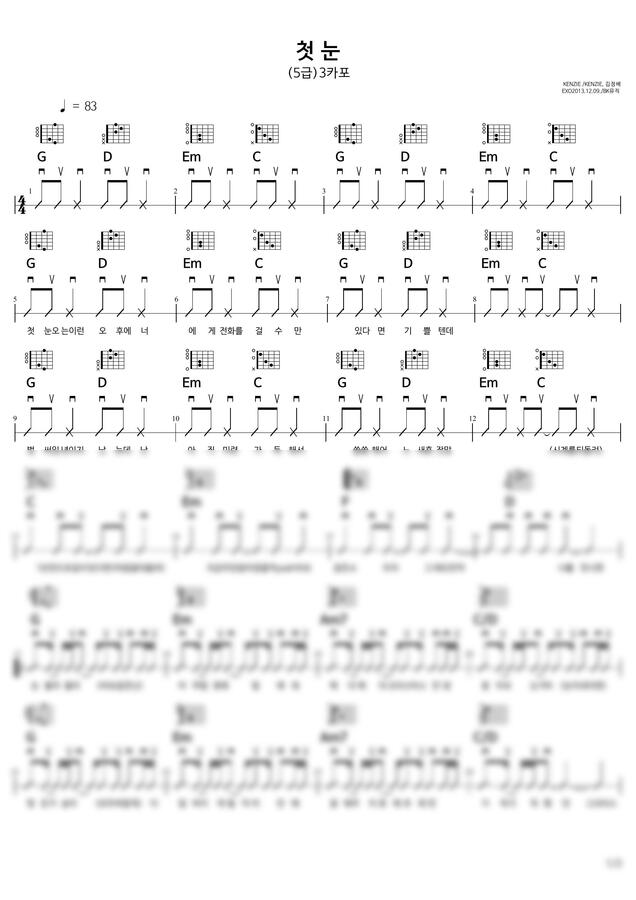 EXO(엑소) - 첫 눈(캐롤) ♩=83(5급) 기타악보3P