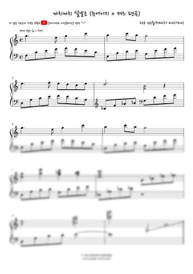 故윤극영 선생님 작곡 동요 설날의 뉴에이지 및 재즈 버전 피아노 편곡 악보입니다.