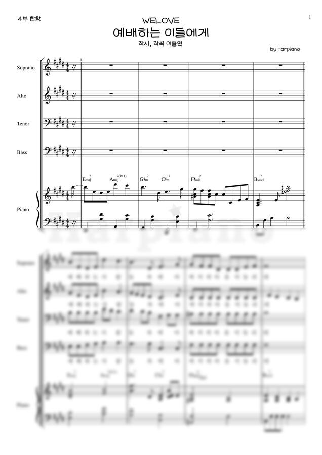 WELOVE - 예배하는 이들에게 (4부 합창) by Harpiano
