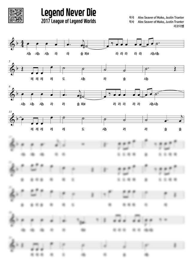 2017 LOL Worlds - Legend Never Die (계이름) by 리코더쌤