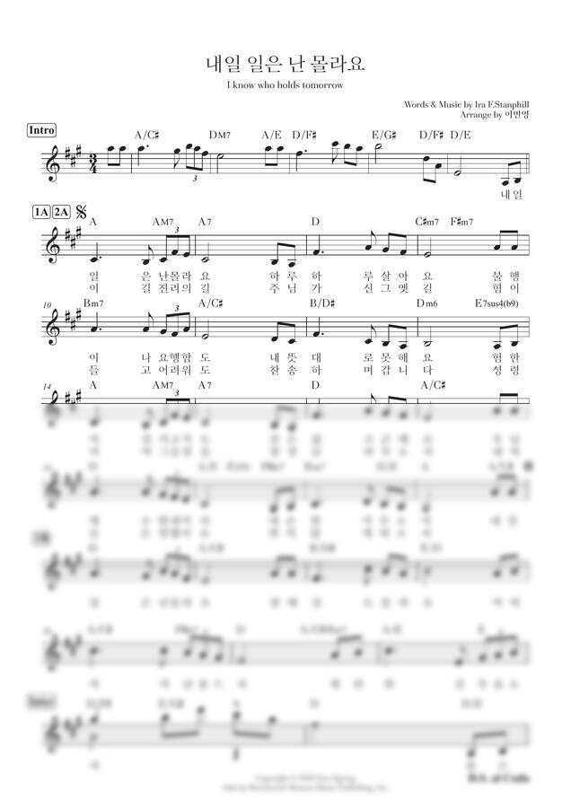 마커스워십 - 내일 일은 난 몰라요 I know who holds tomorrow (리드시트) by 이민영/권미성