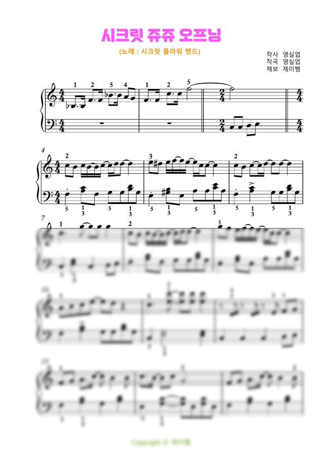 오늘은 저희학원에 예쁜 초등3학년 여학생이 신청한 시크릿 쥬쥬 오프닝 악보를