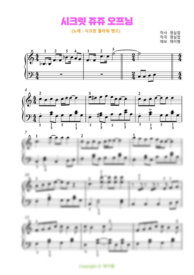악보 > 시크릿쥬쥬(오프닝) (다장조/초~중급) by 제이쌤