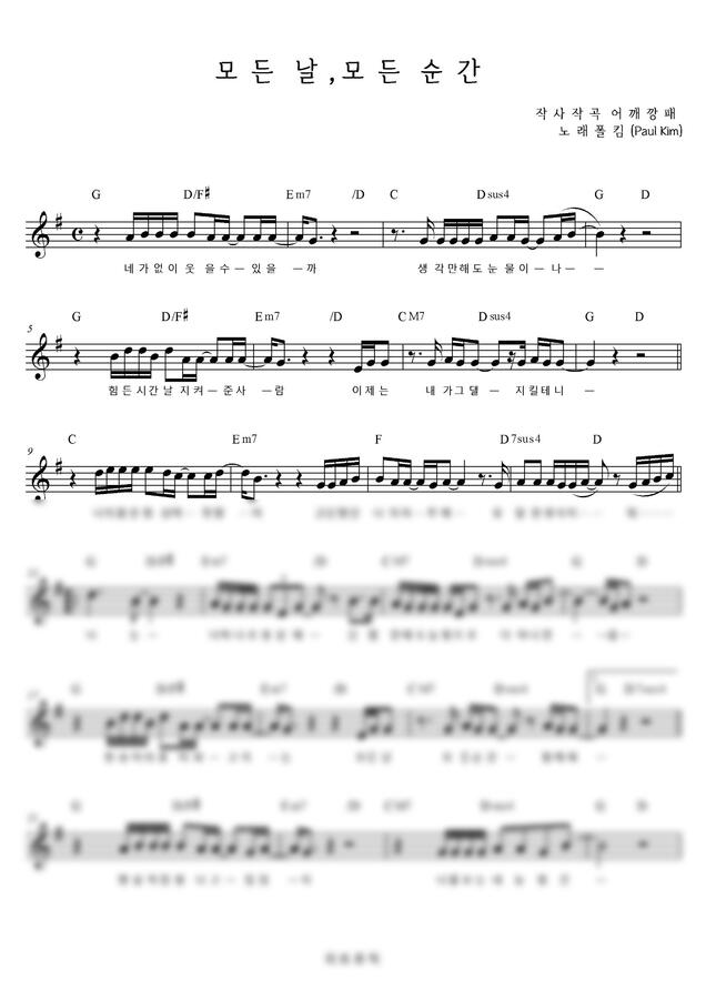 폴킴 - 모든 날, 모든 순간 (Gkey, Dkey) (코드악보) by 리트뮤직