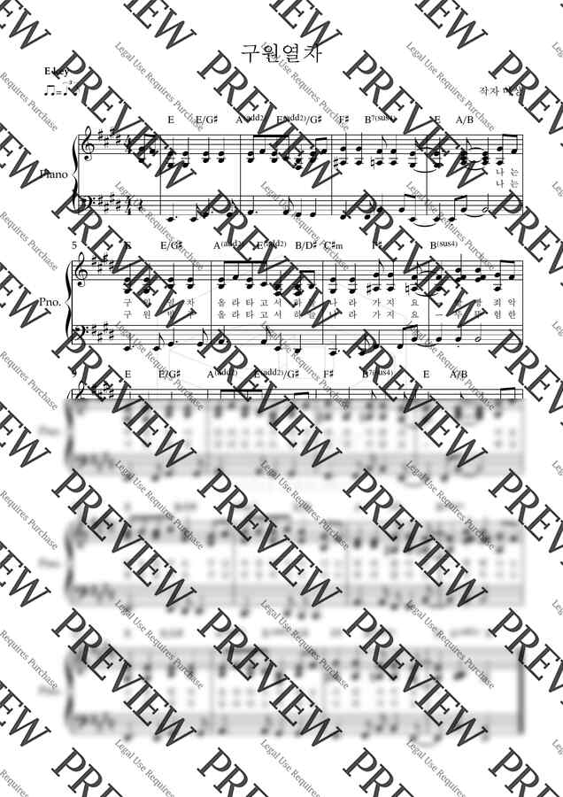 오늘은 '구원열차'의 피아노 악보를 가져왔어요~!