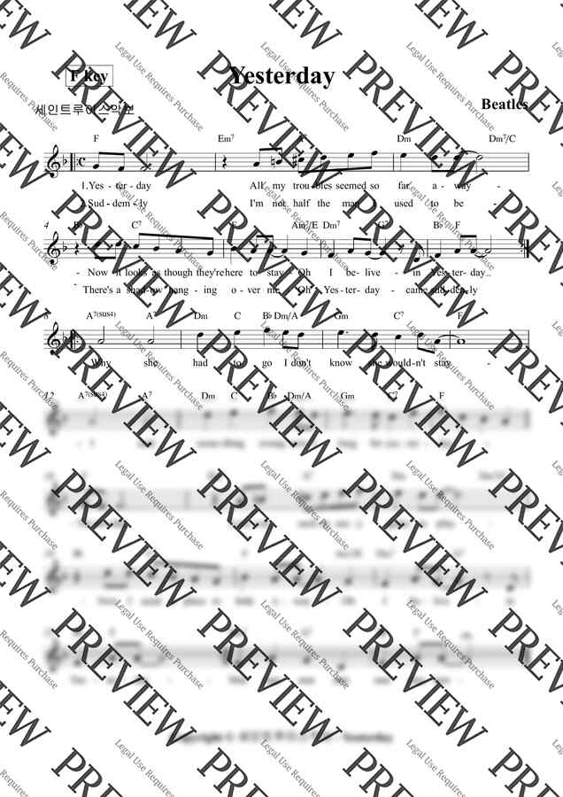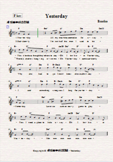 우리의 영원한 비틀즈(Beatles)의 "Yesterday" 보컬+코드악보 입니다