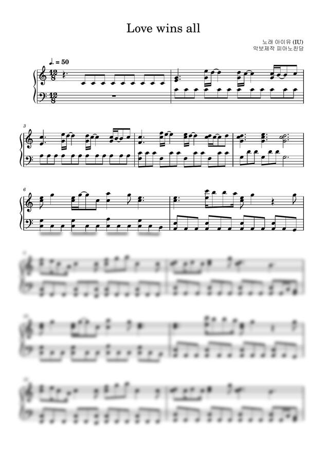 2024년 1월 24일에 발표된 아이유의 신곡 Love wins all을 피아노 악보(풀버전)로 제작해보았습니다.