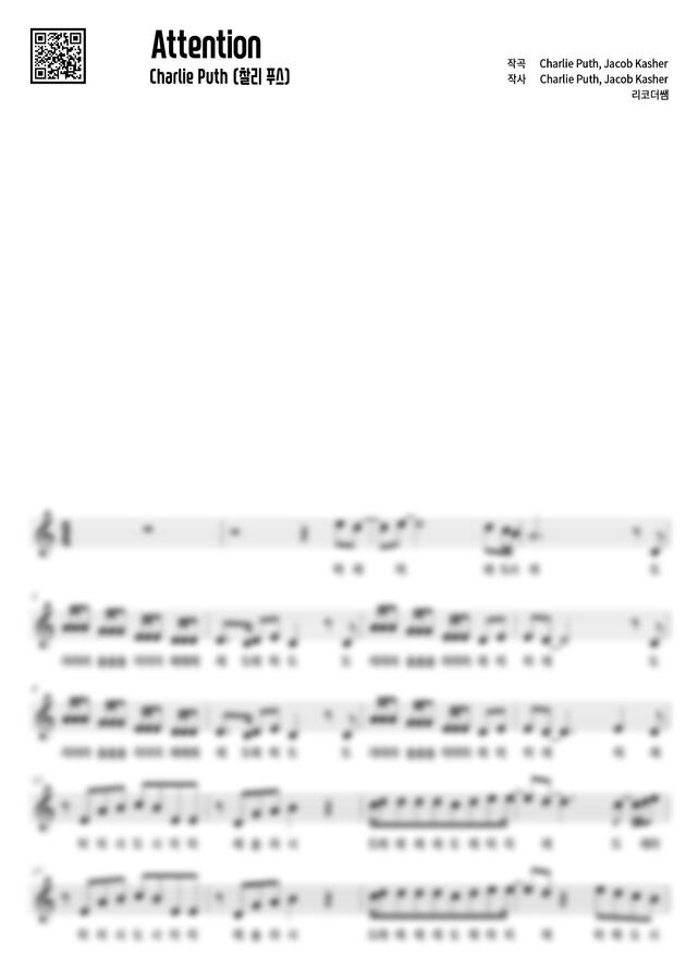 Charlie Puth(찰리 푸스) - Attention (계이름) by 리코더쌤