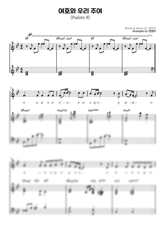 최덕신 - 시편 8편_Bb키 (여호와 우리 주여, 반주 악보) by 천정아