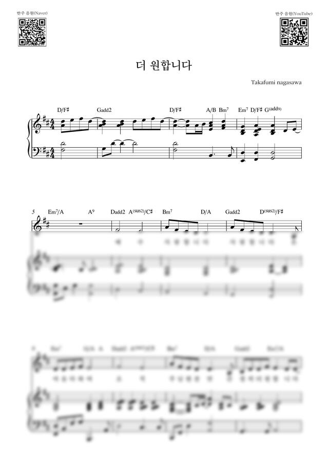 나가사와 타카후미 - 더 원합니다(Ver.1)_D Key (피아노 3단) by Samuel Park0