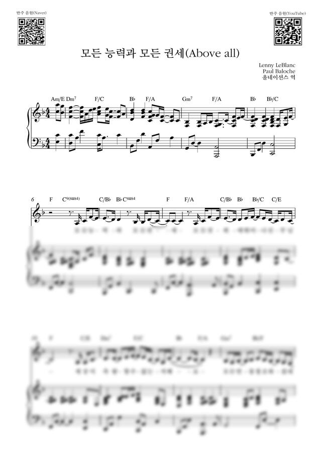 Lenny LeBlan, Paul Baloche - 모든 능력과 모든 권세 (Above All)_F Key (피아노 3단) by Samuel Park0