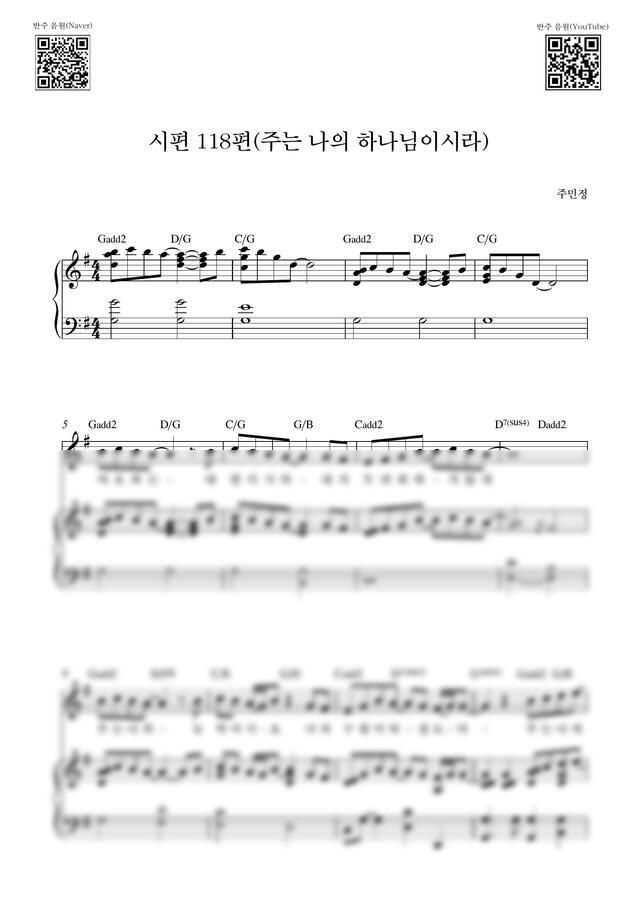 주민정 (제이어스) - 시편 118편 (주는 나의 하나님이시라)_G Key (피아노 3단) by Samuel Park1