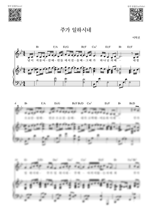 이혁진 - 주가 일하시네_Bb Key (피아노 3단) by Samuel Park