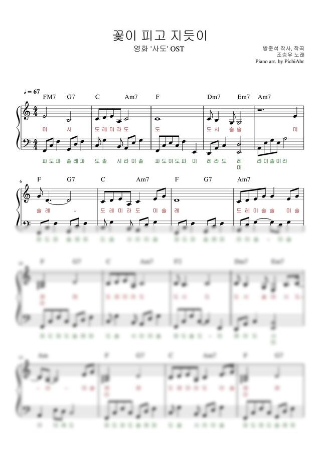 조승우 - 꽃이 피고 지듯이(사도 OST) (쉬운 계이름 악보) by 피치아르