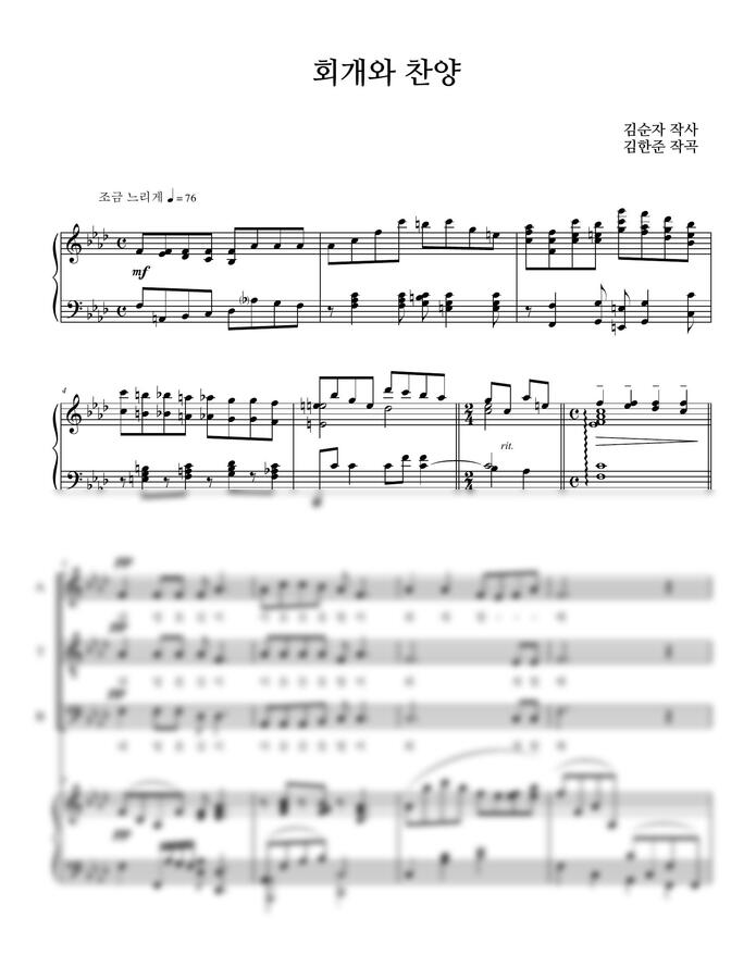 김한준 - 회개와 찬양 (4성부&피아노) by 순희피아노