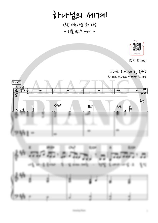 홍이삭 - 하나님의 세계(참 아름다운 곳이라) (Ekey,반주악보) by 어메이징피아노