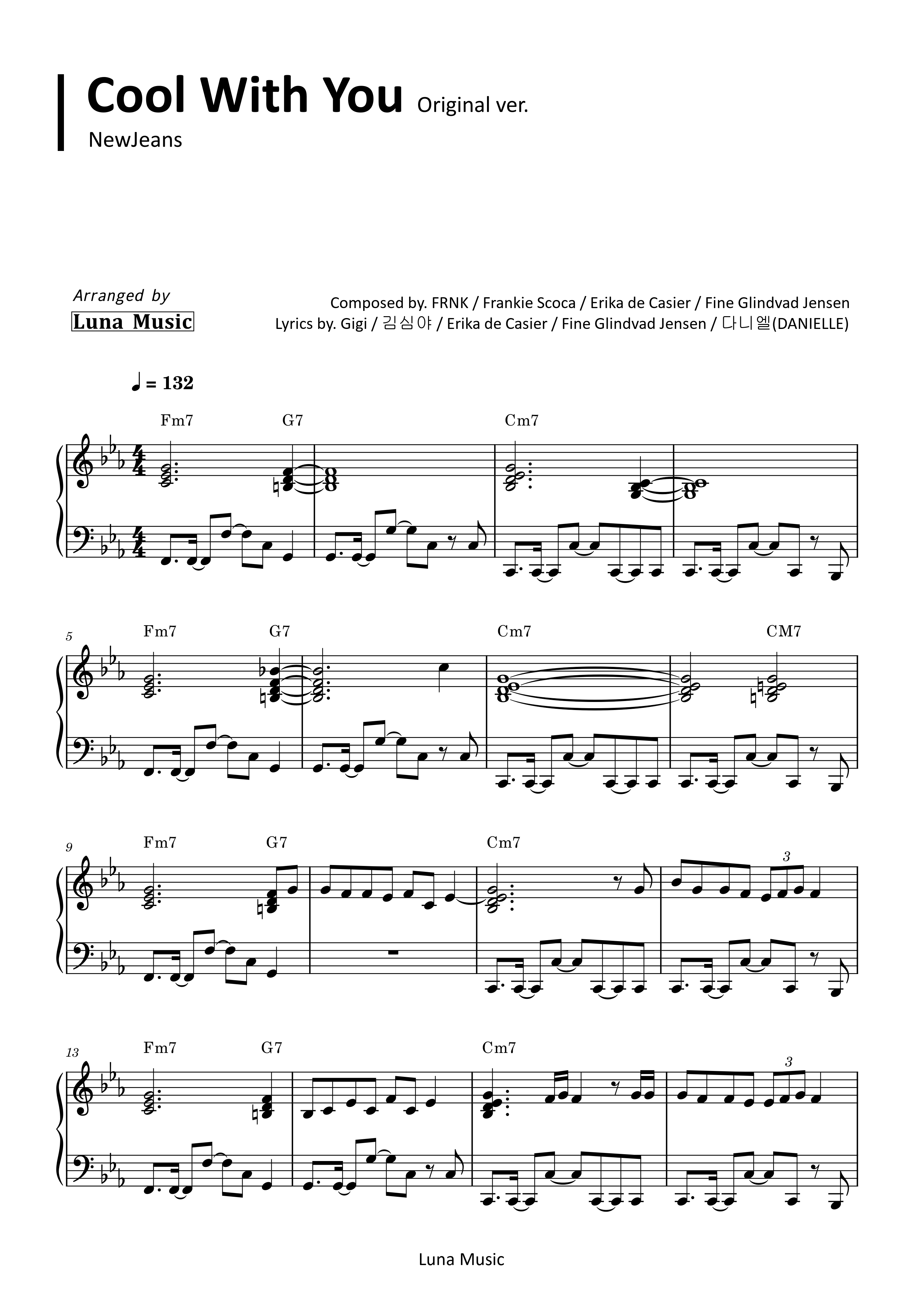 Cool With You - NewJeans (뉴진스) Original ver. 를 악보로 제작하였습니다.